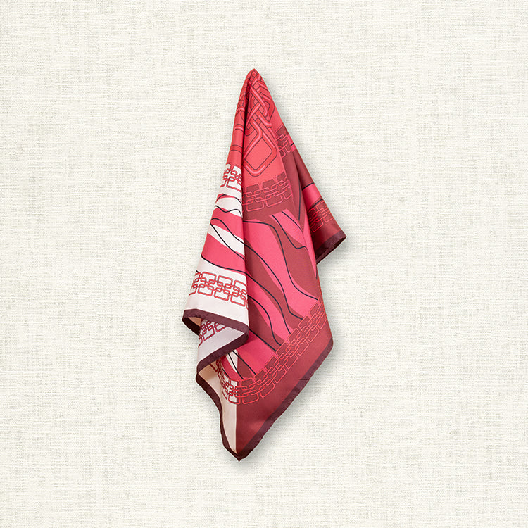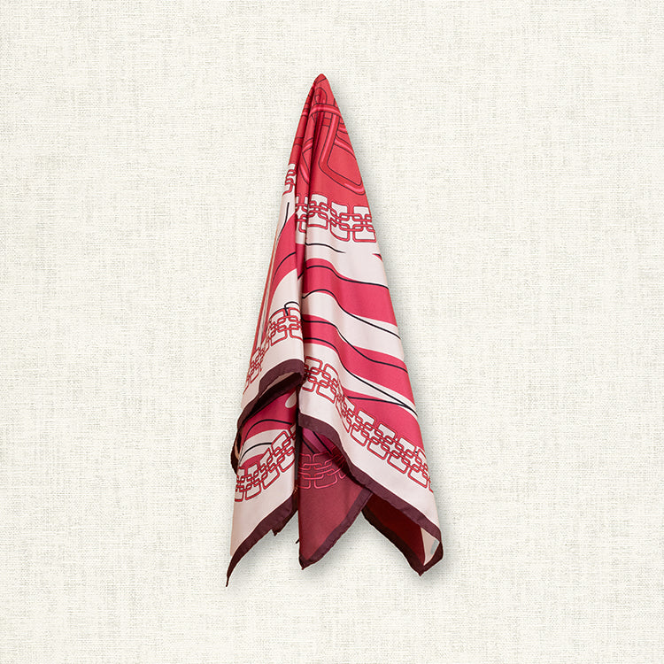 The hand drawn look on this scarf makes it perfect for the casual outfit as well as the more formal.  Wear it out to lunch, or to a special occasion! Shades of maroon and beige colours.